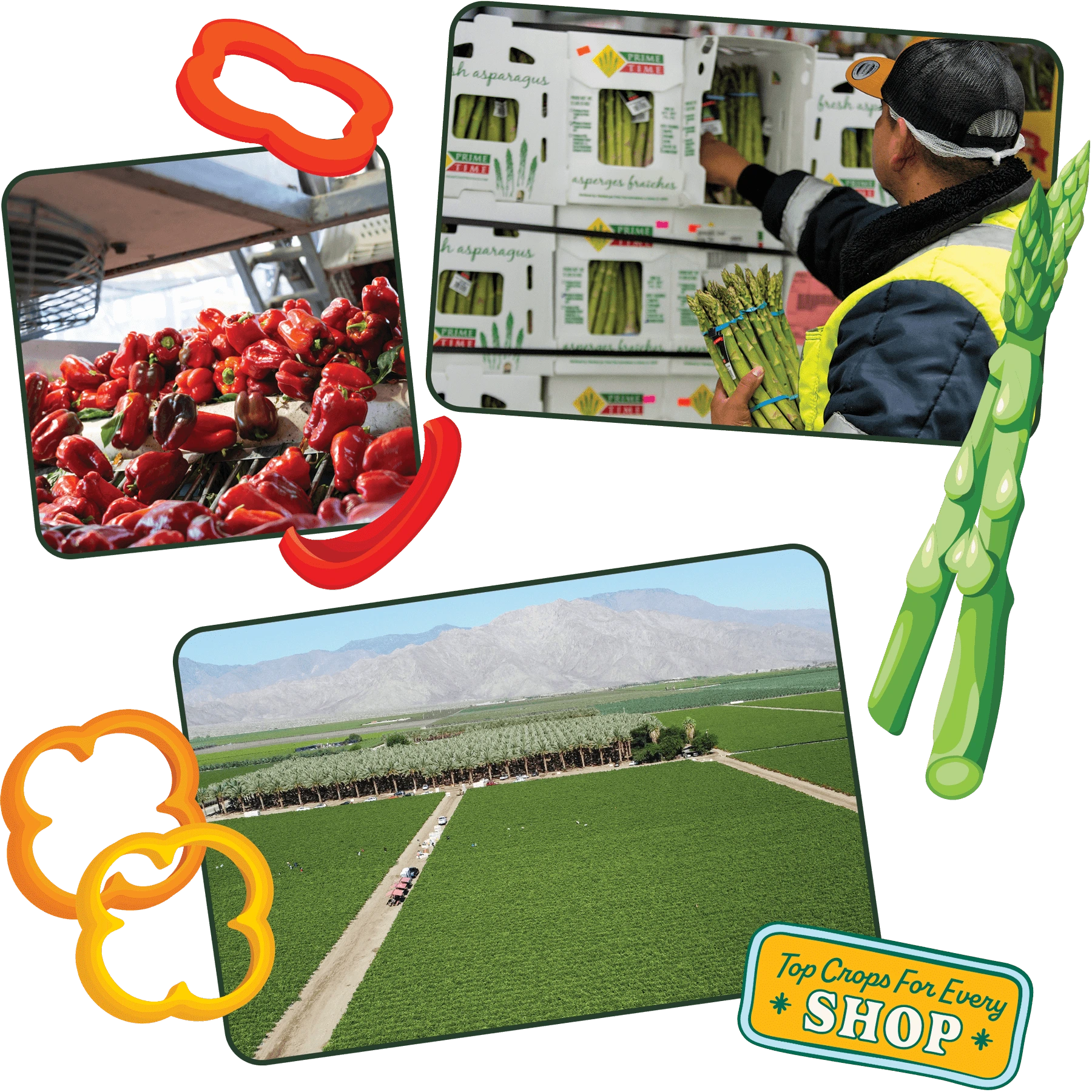 Multiple farming regions provide year-round availability of both our conventional and organic asparagus. But the fresh quality of the gorgeous green stalks we deliver is what sets Prime Time apart. Our vertical integration ensures that our carefully calibrated harvests are picked at their prime in every region. Then they’re packed and shipped to provide exceptionally delicious and nutritious vegetables that look and taste great.
